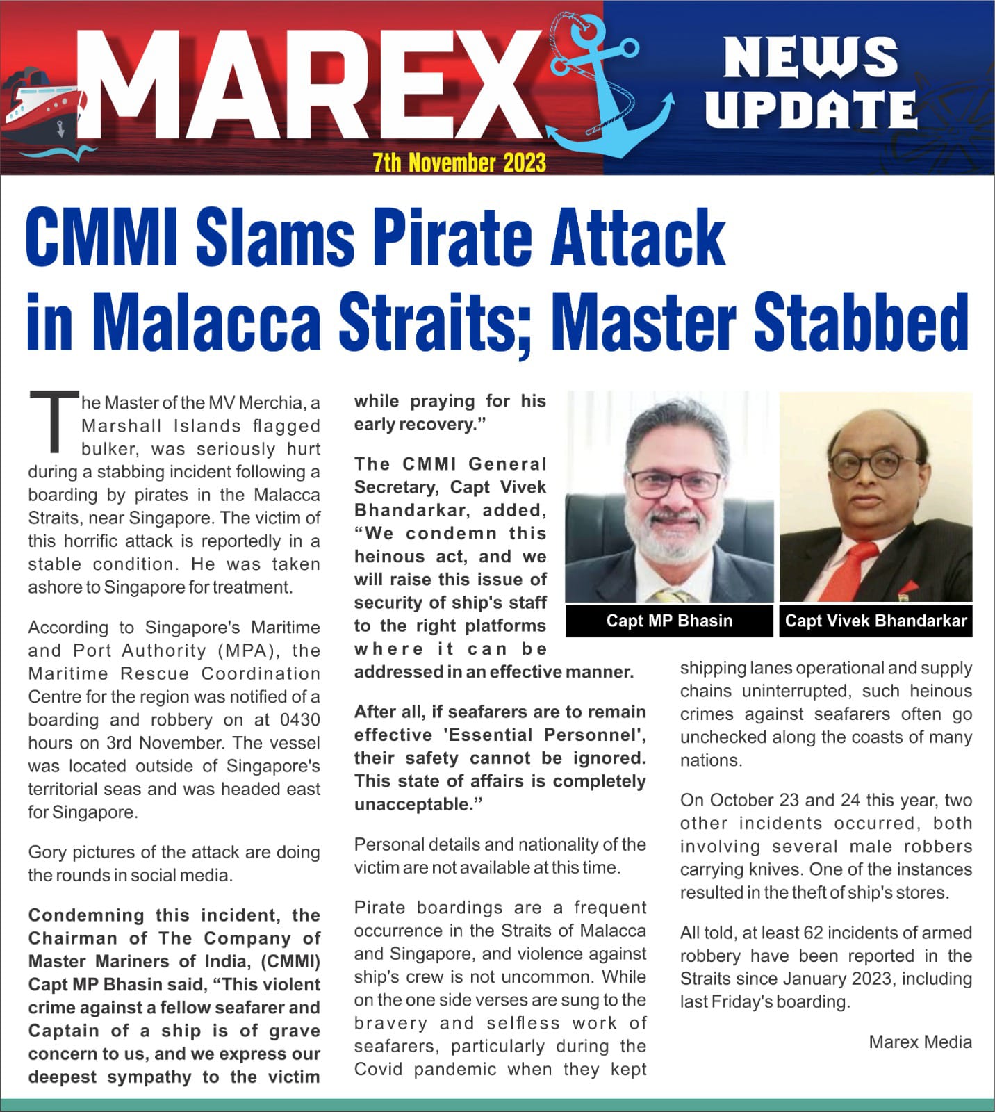 CMMI Slams Pirate Attack in Malacca Straits; Master Stabbed